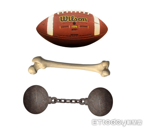 韓國瑜以橄欖球、狗骨頭、鏈球詮釋兩岸關係。(圖片來源:臺灣“東森新聞雲”)