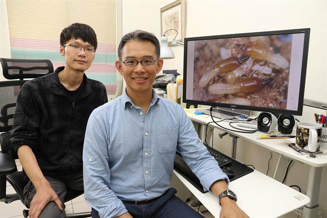 臺灣中興大學昆蟲係副教授李後鋒(右起)與博士生梁維仁發現白蟻新物種“穿山甲木鼻白蟻”,獲國際期刊刊登。(圖片來源:臺灣“中時電子報”)