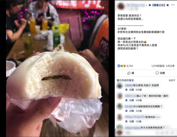 據報道,近日一位臺灣網友在臉書上發布了一張肉包子照片,只見一口下去,肉包子的餡用“一線天”來形容最恰當不過,該名網友諷刺說,“屏東燈會鹿港肉包,我還以為我買的是饅頭”。