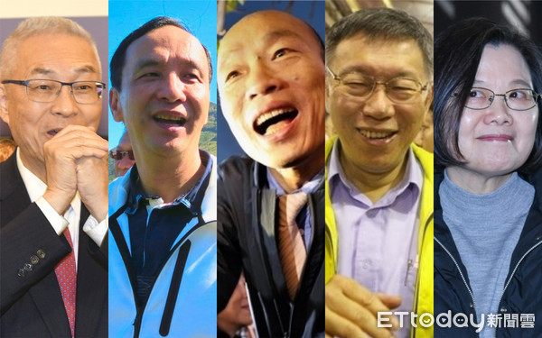 吳敦義、朱立倫、韓國瑜、柯文哲、蔡英文。(圖片來源:臺灣“東森新聞雲”)