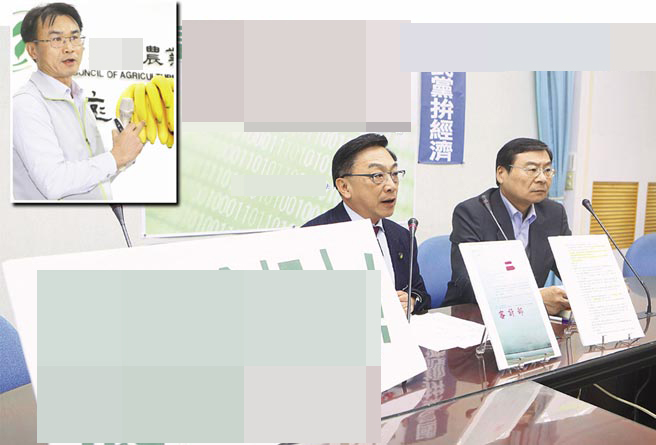 國民黨“立委”陳宜民(左)、曾銘宗(右)19日召開記者會指出,臺當局“農委會”早在2017、2018年就砸1350萬新臺幣搞網軍帶風向,質疑“農委會”回避臺“立法院”監督,要求“農委會”給交代,否則下周將到臺“監察院”檢舉,(小圖)為“農委會”主委陳吉仲。(圖片來源:臺灣《中國時報》)
