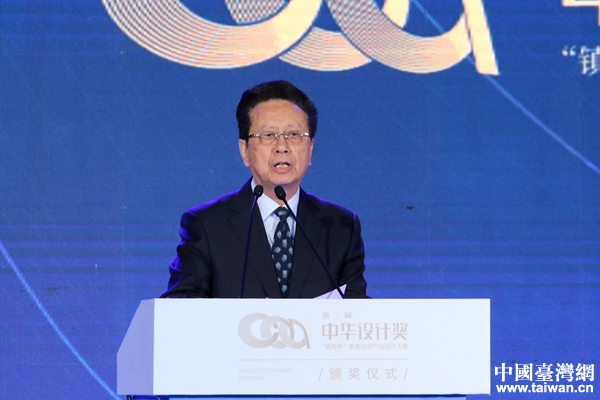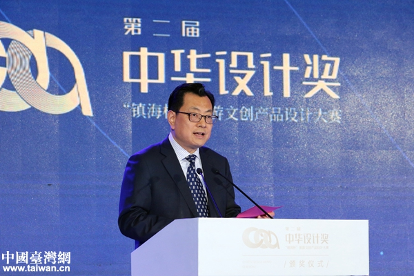 中國臺灣網4月12日寧波訊(記者 張亞靜 李奕均) 4月12日下午,第二屆中華設計獎“鎮海杯”旅遊文創產品設計大賽頒獎儀式在浙江省寧波市舉行。十二屆全國人大常委會副委員長、中華職業教育社十一屆理事會理事長陳昌智,寧波市委副書記、市長裘東耀,國務院臺辦交流局局長黃文濤,中華職業教育社黨組書記方乃純,浙江省臺辦副主任章啟忠等領導,以及臺灣設計聯盟理事長林磐聳,清華大學美術學院院長、中國美術家協會副主席魯曉波等出席頒獎儀式。