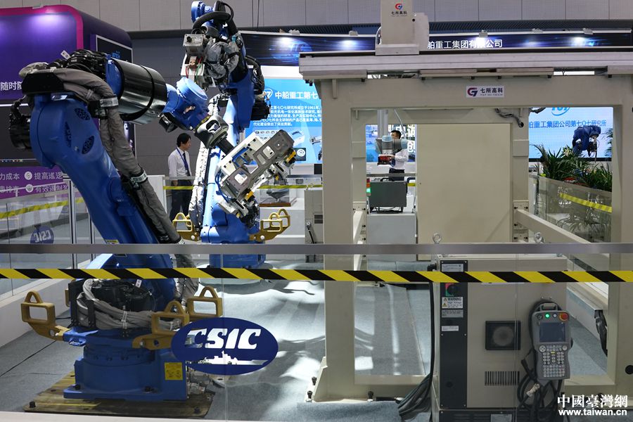 機器手臂展示柔性焊接檢測。(中國臺灣網 黃曉迪 攝)