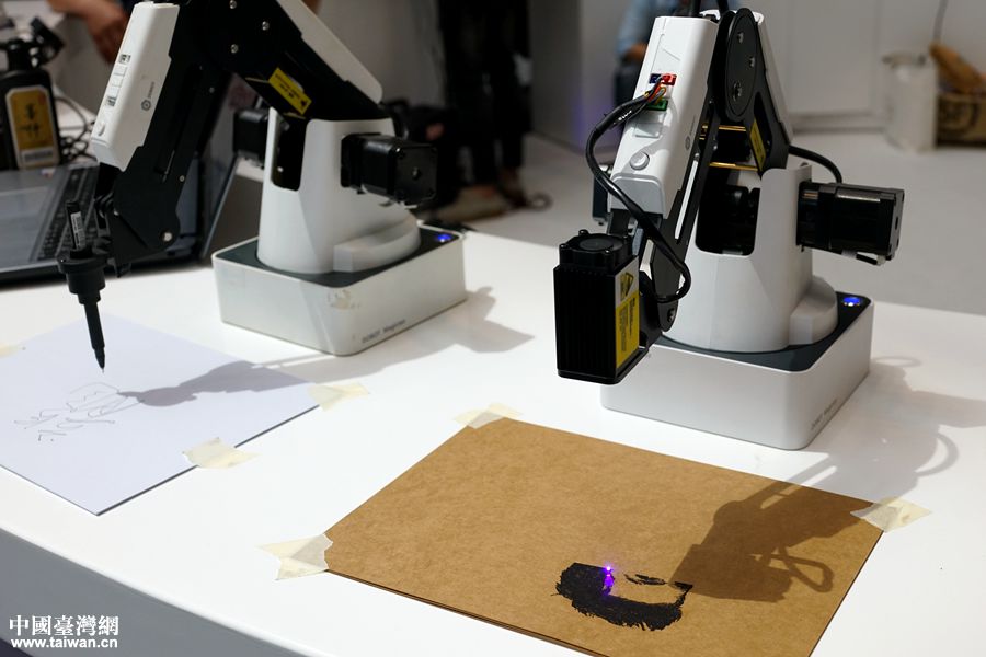 機器手臂展示精準激光雕刻。(中國臺灣網 黃曉迪 攝)