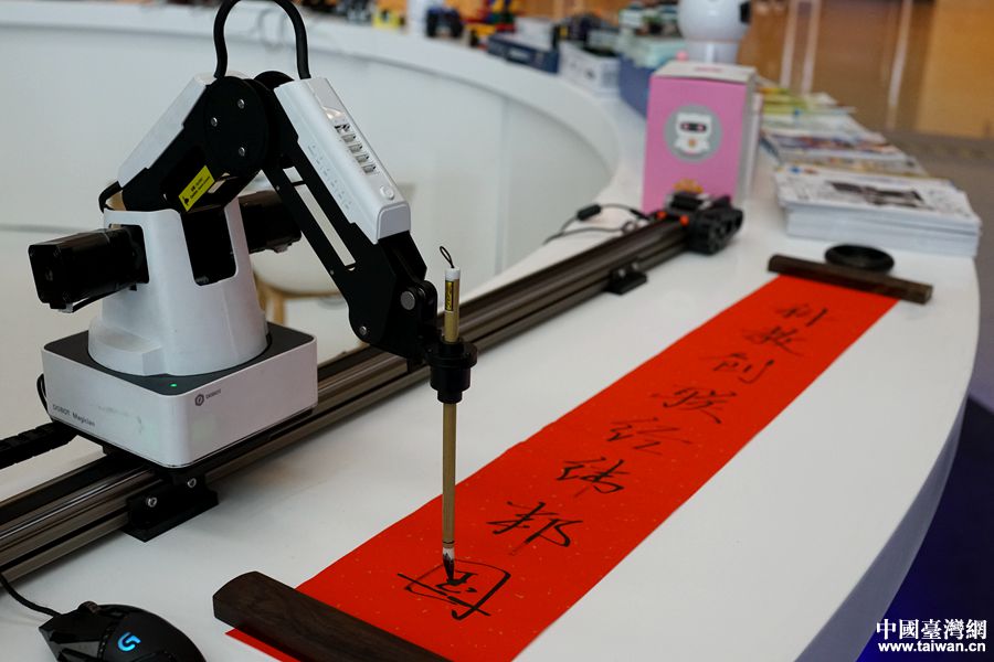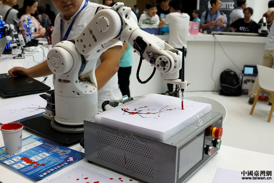 機器手臂展示毛筆繪畫。(中國臺灣網 黃曉迪 攝)
