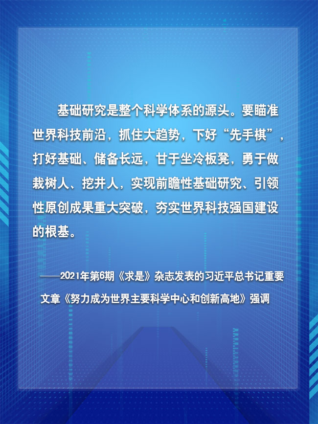 基礎研究是一個持續累積的過程,打好基礎方能儲備長遠。廣大科技工作者要主動承擔重任使命,發揚甘于坐冷板凳,勇于做栽樹人、挖井人的精神,加大基礎研究力度,實現前瞻性基礎研究、引領性原創成果重大突破,為科技創新提供源源不竭的動力,為我國向世界主要科學中心和創新高地邁進貢獻力量。