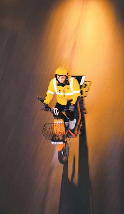 重慶街頭,網約配送員在送餐途中。