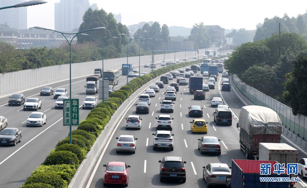 廣州環城高速公路上車行緩慢(5月1日攝)。當日,廣州周邊高速公路迎來出行高峰。新華社記者 盧漢欣 攝