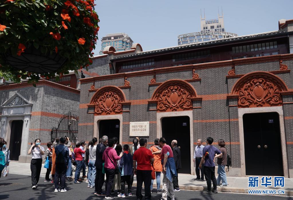 遊客在位于上海的中共一大會址參觀留影(5月1日攝)。新華社記者 劉穎 攝