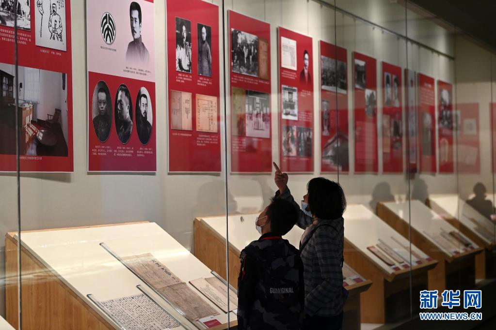 觀眾在天津博物館舉行的“曙光偉業——五四運動與中國共產黨的創建”展覽上參觀(5月1日攝)。新華社記者 李然 攝