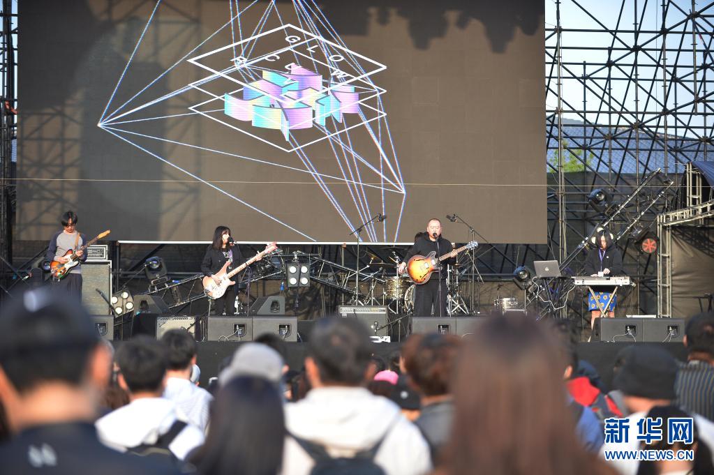 觀眾在北京草莓音樂節上觀看發光曲線樂隊現場表演(5月2日攝)。新華社記者 肖瀟 攝