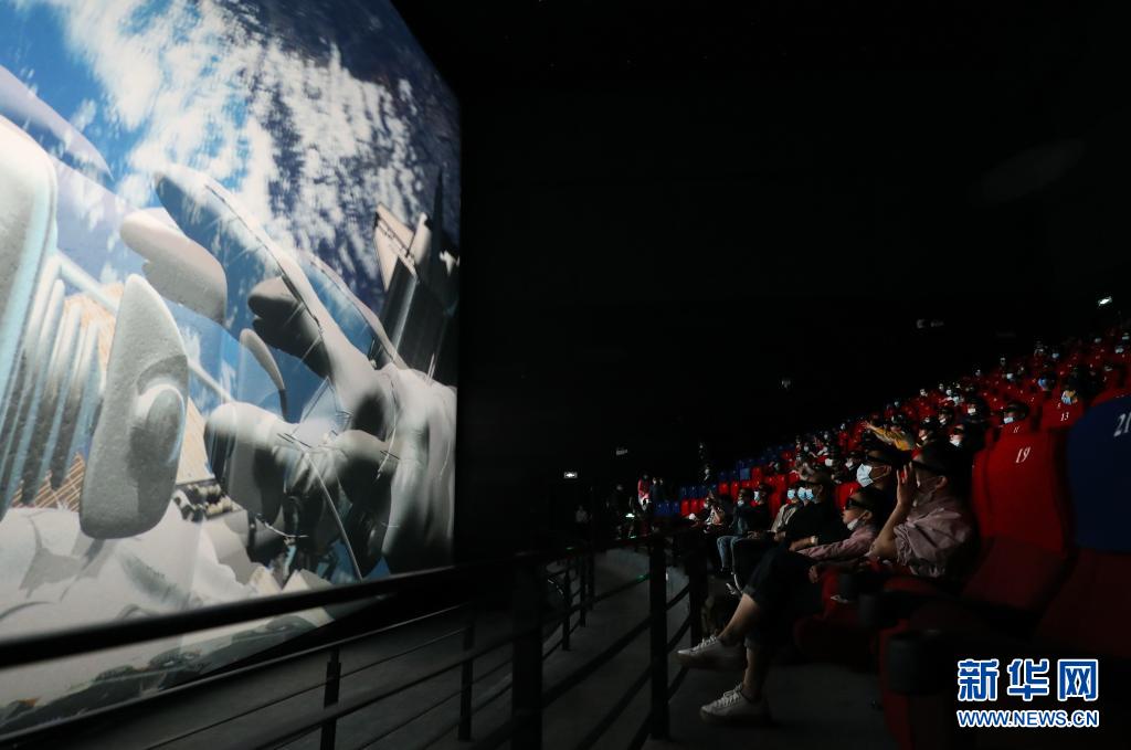 遊客在上海科技館影院內觀看立體巨幕電影《國際空間站》(5月2日攝)。新華社記者 方喆 攝