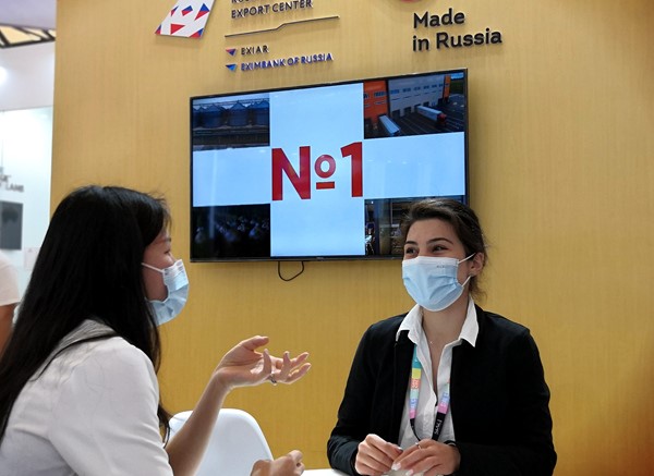 俄羅斯展商正在洽談業務。人民網記者 孫博洋攝