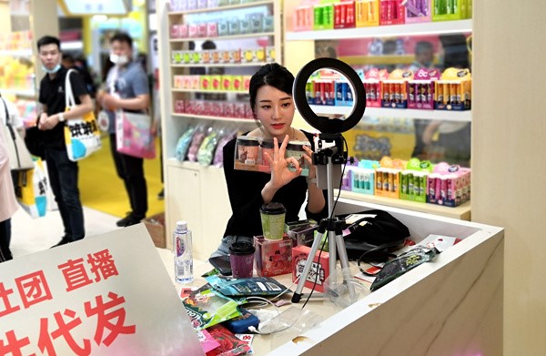 某展商展臺上主播正在直播帶貨。人民網記者 孫博洋攝