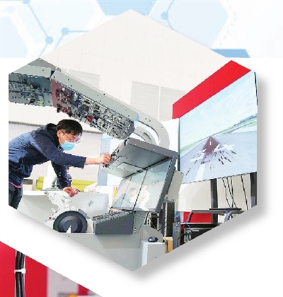 “向下是下降,也是增速。拉起來是上升,也是減速。”作為“機長”,于教練帶領記者操作了飛機的起降全過程。眼前的大屏幕模擬了飛行員的視角,能夠體驗隨時觀察天空和地面的情況。此外,飛行儀表、係統控制板、開關和控制器等設備也一應俱全。