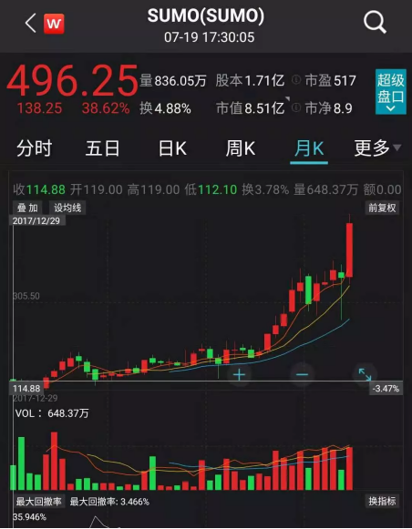 Sumo 在2017年登陸倫交所另類投資市場(AIM)時的發行價為100便士,結合本次交易價格,Sumo市值在4年時間里漲幅已經超4倍。