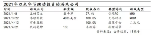 而另一方面,字節跳動亦成為騰訊在遊戲領域不可忽視的挑戰力量。自從2021年初以來,字節跳動投資的遊戲公司有4家。