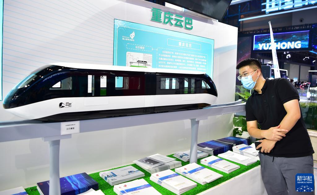 8月24日,觀眾在2021智博會重慶璧山展廳參觀“雲巴”模型。新華社記者 王全超 攝
