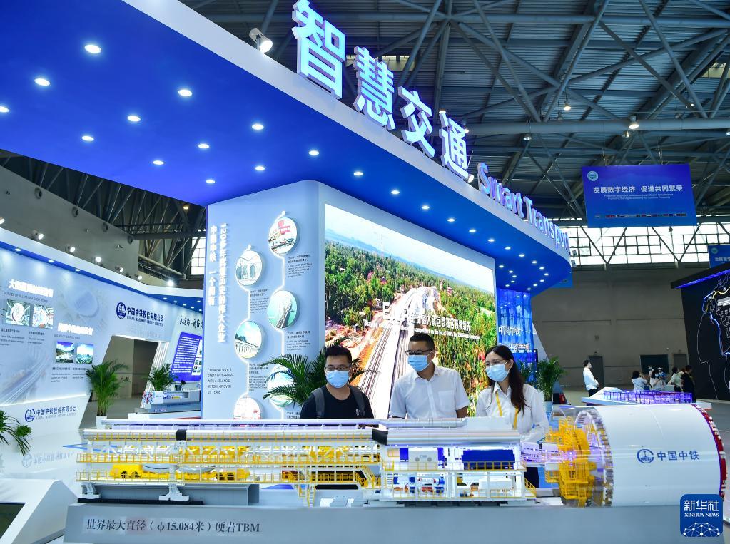 8月23日,觀眾在2021智博會中國中鐵館參觀。新華社記者 王全超 攝