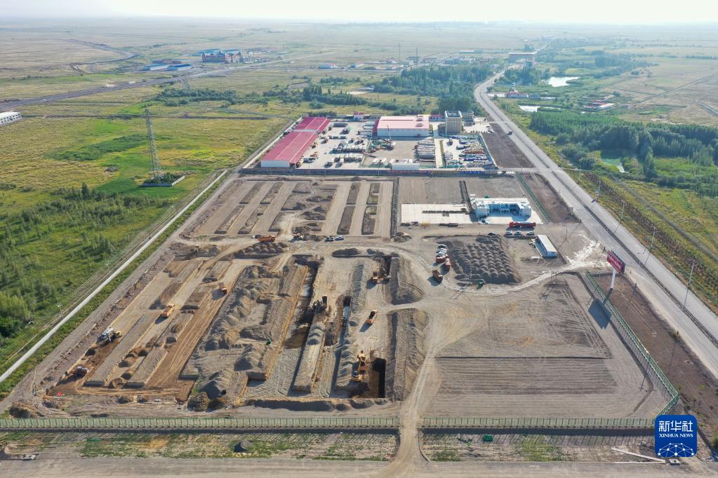 這是8月11日拍攝的新疆塔城開發開放重點試驗區國際物流公路港建設現場(無人機照片)。新華社發(張培琪 攝)