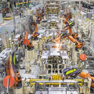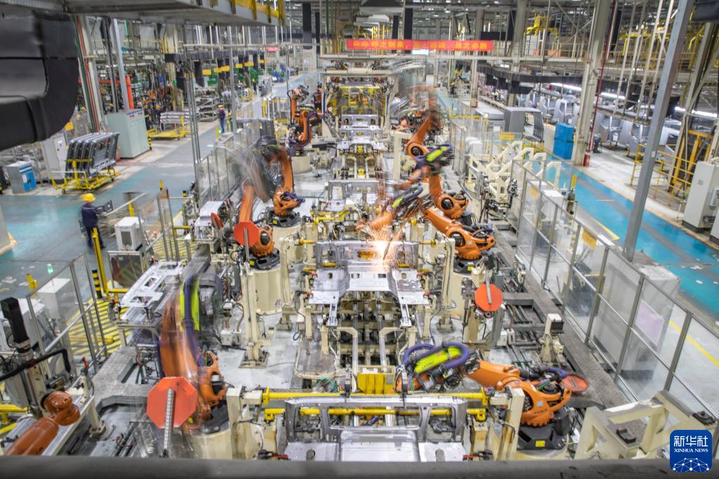 4月2日,在重慶上汽依維柯紅岩商用車有限公司焊裝車間,機器人在進行焊接作業。新華社記者 黃偉 攝