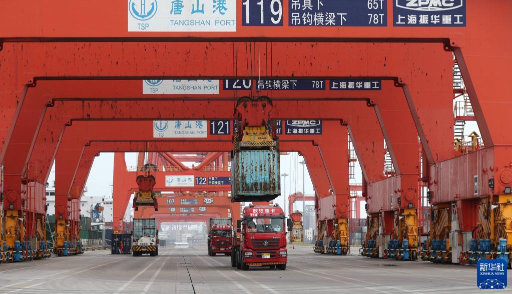7月15日拍攝的河北唐山港京唐港區。新華社發(李磊 攝)