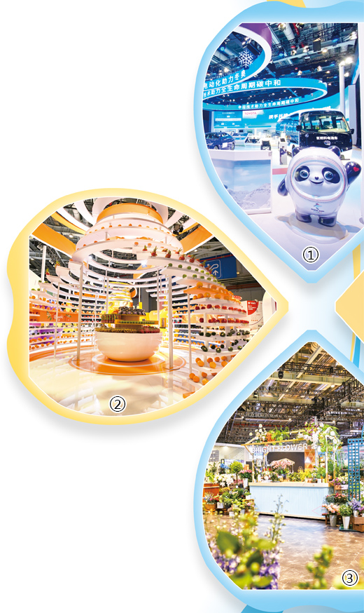 圖③:11月4日,第四屆進博會食品及農產品展區,展出的鮮花芬芳奪目。