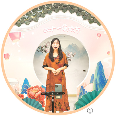 圖①:11月10日,在安徽合肥的短視頻直播基地,主播正在推廣中國傳統香雲紗服裝。
