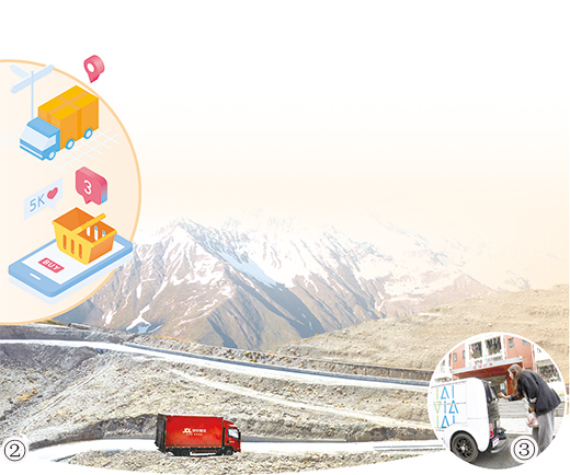 圖②:11月2日,在西藏日喀則,京東物流為用戶送貨。