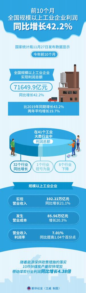 前10個月全國規模以上工業企業利潤同比增長42.2%