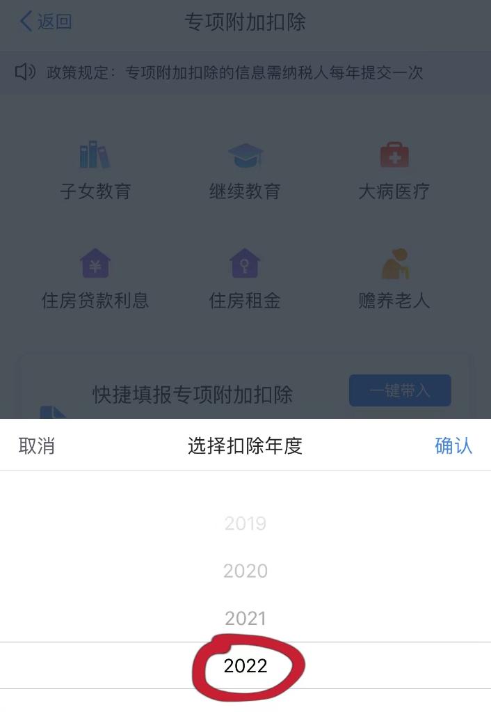 選擇扣除年度【2022】,點擊【確定】,再【一鍵確認】即可↓↓↓