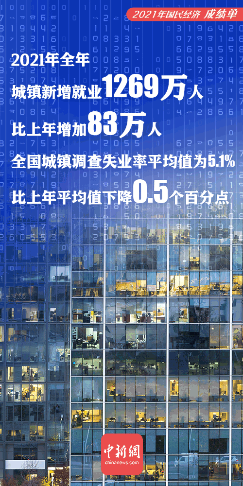 就業是民生之本,全年城鎮新增就業1269萬人,比上年增加83萬人,達到了1100萬人以上的預期目標。