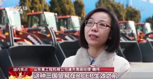 山東某工程機械公司通關高級經理 魏瑋:這種三國貿易在RCEP生效之前,是不能享受關稅協定的優惠的,RCEP對韓國生效之後,我們就能通過韓國簽發的背對背原產地證明,享受RCEP的優惠關稅。在RCEP生效的第一年,我們公司節減關稅金額有望達到十萬元人民幣。