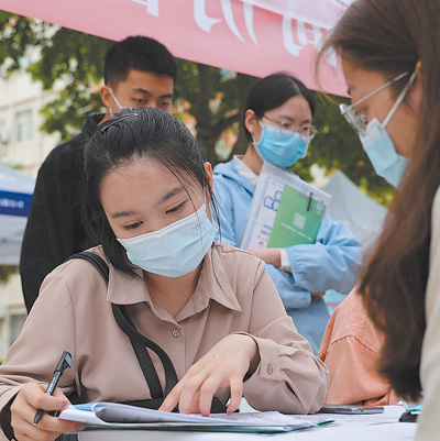 “找工作就是這樣,這也是你們步入社會的第一次‘考試’!今年因為疫情原因,很多用人單位無法來到學校現場招聘,學校還將組織多場線上雙選會,也會推出‘就業大巴車’帶你們到別的學校參加招聘會。另外,你也可以關注教育部的國家24365大學生就業服務平臺,那上面也有不少招聘信息。”輔導員耐心地為她講解政策。