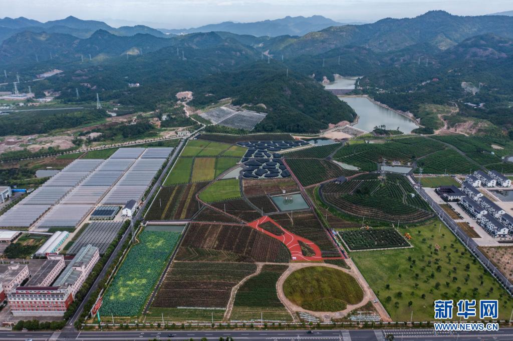 這是7月7日在浙江省東陽市花園村拍攝的現代農業生態園(無人機照片)。新華社記者 徐昱 攝