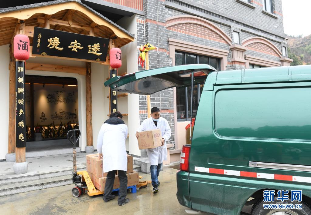 “千島湖·大下姜”鄉村振興聯合體的配送專線車輛在淳安豐家源村裝運山村土燒酒,準備送貨出山(1月26日攝)。2018年,淳安縣下姜村聯合周邊行政村成立“千島湖·大下姜”鄉村振興聯合體,探索區域協同發展。2020年8月開始,聯合體啟動鄉村振興配送專線,為域內32個行政村農村電商的出貨、村民的網購進行上門服務。新華社記者 翁忻旸 攝
