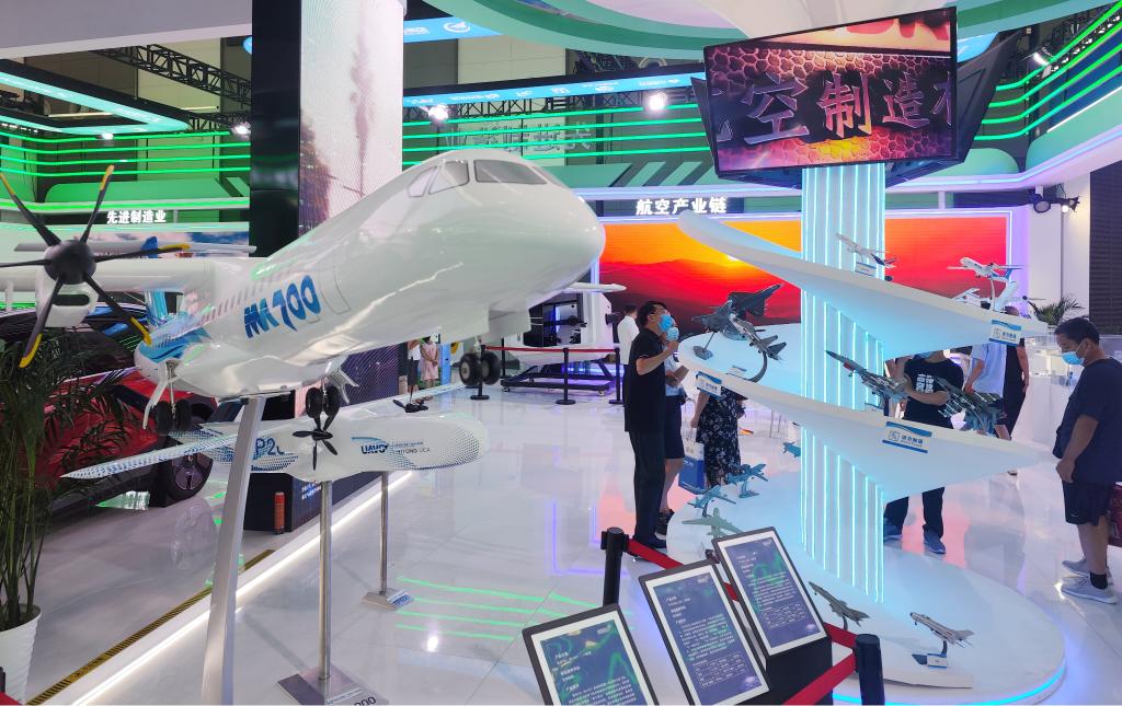 8月16日,在第六屆絲綢之路國際博覽會上,觀眾在西安展區了解航空制造業。新華社記者 李一博 攝