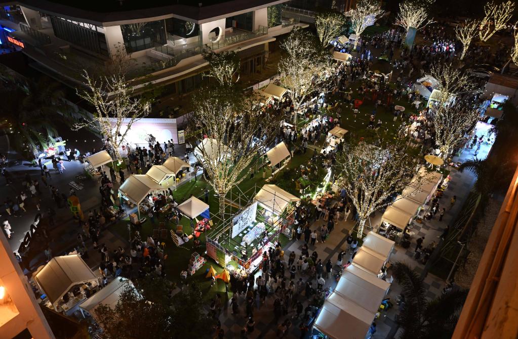 晚風輕拂,市民遊客穿行市集,或享受美食,或駐足觀賞,或舉起手機拍照,享受著夜晚的戶外悠閒時光。