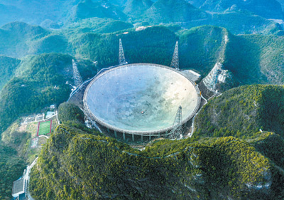 坐落于貴州省平塘縣的“中國天眼”射電望遠鏡。新華社記者 歐東衢攝