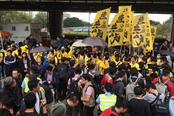 數十名“熱血公民”成員身穿黃衣,部分人戴上口罩、護膝及頭盔。