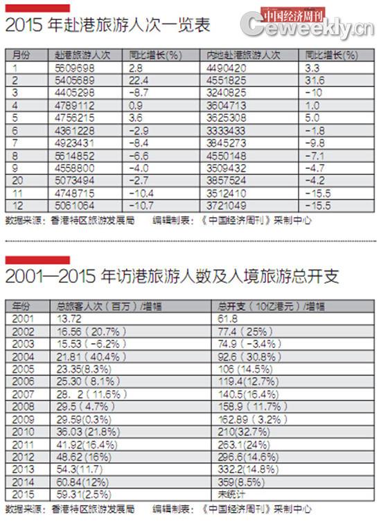 2015年4月,深圳市公安局出入境管理部門開始停止向深圳市居民簽發香港一簽多行簽注,改為一周一行。諸多因素影響下,訪港人數隨即有了顯著變化。2015年6月開始,訪港人數連續出現7個月跌幅。