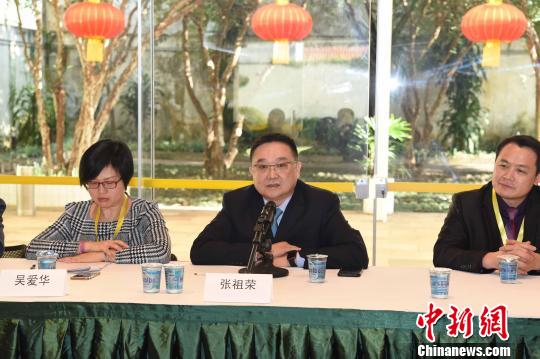 圖為:澳門貿易投資促進局主席張祖榮(中)致辭。 莫成雄 攝