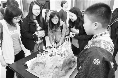 圖為大學生參觀“牧童之家”,了解手工制作。 李雷雷攝