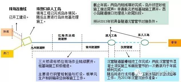 港珠澳大橋于2009年12月15日開工建設,工程總長55公里,集橋、島、隧為一體,設計速度為100公里/小時;綜合考慮通航需求和航空限高,是世界上最長的跨海大橋。大橋工程包括三項內容:一是海中橋隧工程;二是香港、珠海和澳門三地口岸;三是香港、珠海、澳門三地連接線。預計2017年年底,港珠澳大橋建成通車後,珠海至香港的交通時間將由現在的水路1小時,陸路3小時以上,縮短至20-30分鐘,首次實現珠海、澳門與香港的陸路對接。