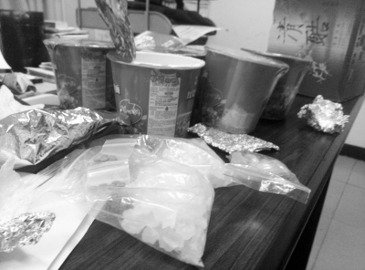 桶裝方便面內夾藏冰毒。郝金朋 攝