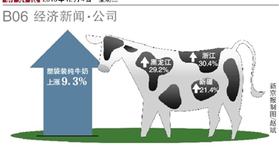 據新華社全國農副產品和農資價格行情係統監測,8月份以來,全國塑袋裝純牛奶價格呈現較為明顯的上漲走勢。與8月1日相比,11月29日,塑袋裝純牛奶均價上漲9.3%。分地區來看,近九成省區市塑袋裝純牛奶價格上漲,其中浙江、黑龍江、新疆價格漲幅居前,分別為30.4%、29.2%、21.4%。