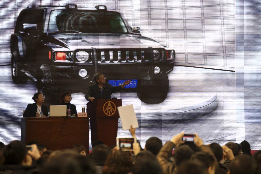 新華社照片,宜賓(四川),2014年1月14日 五糧液集團公務車拍賣結束 成交額超3000萬元 1月14日,在五糧液公務車拍賣會上,競拍者在競拍一輛悍馬車。當日,為期4天的五糧液集團公務車拍賣活動結束,拍賣共成交車輛324臺,成交額3003萬元。1月11日,五糧液開始公開拍賣公務用車,被拍賣的公車包括悍馬、沃爾沃、奧迪等豪華車。新華社發(曾朗)