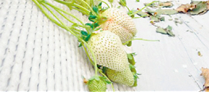 據悉,現在培育白色草莓的大棚已經開始正式生產。一進入大棚,一串串白色的草莓便映入眼簾。地面上也鋪著白色的塑料薄膜,防止白色草莓沾到泥土。