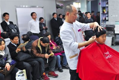 “我等了一個小時了。”中午11點,從望京趕來剃頭的劉先生決定“死等”,午飯都不敢出去吃,怕一不小心錯過了號。