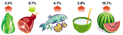 國家統計局數據顯示,上月我國食品價格雖然同比仍然呈現上漲趨勢,但豬肉價格下降幅度達到8.7%,拖了物價上漲的“後腿”。記者走訪廣州市場更發現,“二師兄”價格回落而近期陰雨綿綿導致菜價攀升,不少市民都更樂意當“肉皇大帝”,菜籃子里的肉菜比例出現明顯變化。